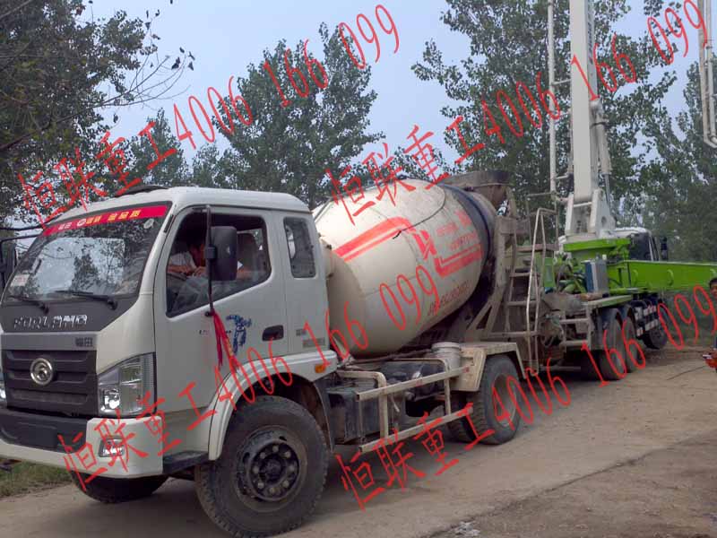 福田4方攪拌車配合泵車在鄉(xiāng)村道路硬化工程