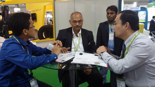 恒聯(lián)攪拌車(chē)總經(jīng)理在印度寶馬展上向展商咨詢(xún)