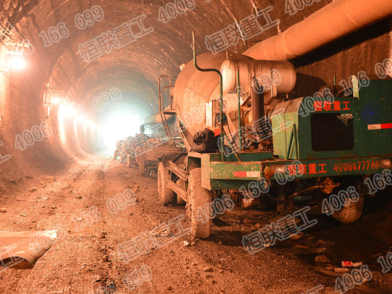 2立方小型攪拌車在隧道礦井內(nèi)部