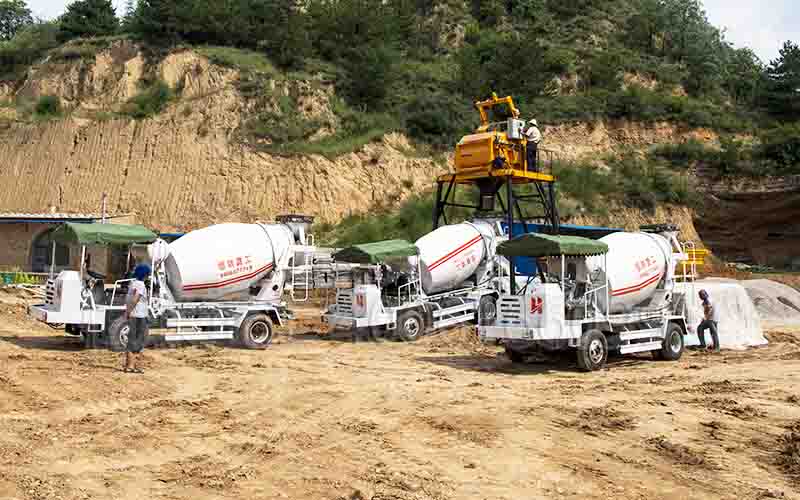 小型四不像攪拌車在山西鄉(xiāng)村公路工地