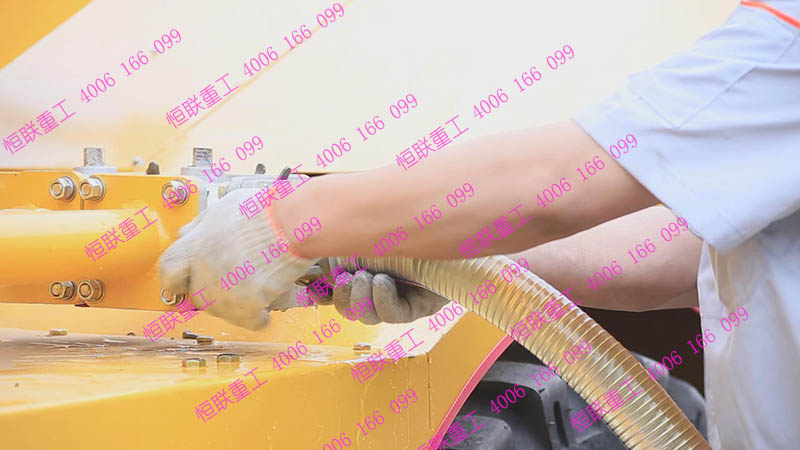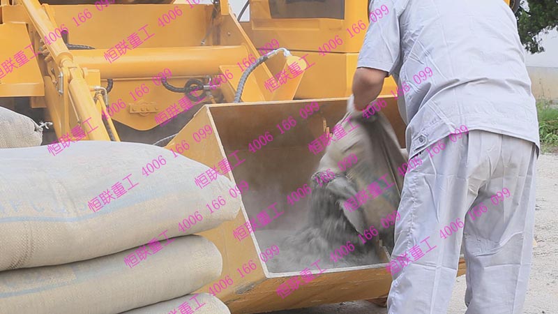 混凝土攪拌車配大容量鏟斗用來裝料,出料量可以控制
