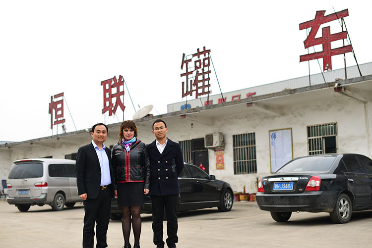 俄羅斯攪拌車代理商和恒聯(lián)重工外貿(mào)專員合影留念