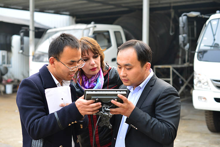 俄羅斯客戶仔細查看并詢問攪拌車配件