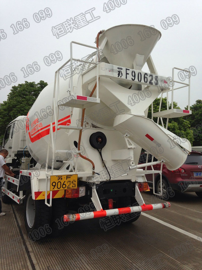 江蘇南通毗鄰上海大都市各種車輛掛牌落戶一直比較嚴(yán)格,各種標(biāo)準(zhǔn)一直走在前端,國(guó)家的各個(gè)掛牌指標(biāo)也都能及時(shí)落實(shí)到位。我公司的小型攪拌車嚴(yán)格按照國(guó)家公告標(biāo)準(zhǔn)設(shè)計(jì)生產(chǎn),在全國(guó)各地都能上牌落戶,合作生產(chǎn)水泥攪拌車的底盤廠家有東風(fēng)、福田、唐駿、重汽、三環(huán)、大運(yùn)等知名廠家。排放標(biāo)準(zhǔn)完全達(dá)標(biāo),燃油公告、環(huán)保公告等水泥攪拌車公告一律齊全,小型攪拌車規(guī)格有2立方——8立方等單橋小型攪拌車,適合限寬限高的路況進(jìn)行混凝土運(yùn)輸工作,下圖為江蘇南通客戶掛好牌照的小型水泥攪拌車: